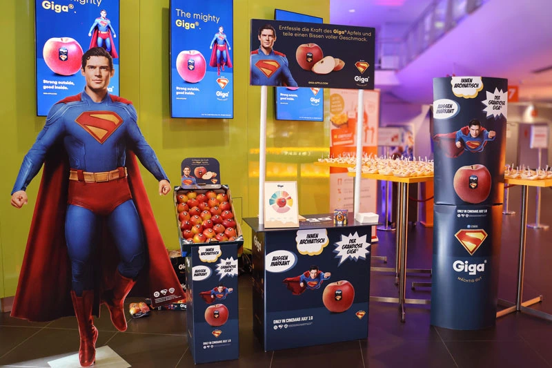 Las actividades veraniegas con las que celebrar las deliciosas cualidades para compartir de Giga® no terminaron ahí. En algunos cines seleccionados, los fans que acudieron a la proyección de Superman recibieron una manzana como muestra, para que pudieran saborear en la sala su sabor extraordinario. Además, la grandeza de Giga® ha sido la protagonista de un anuncio exclusivo proyectado antes de la película. Y en paralelo, la manzana también ha estado presente en degustaciones temáticas e instalaciones en puntos de venta, ofreciendo a los consumidores la oportunidad de descubrir todo el sabor de esta manzana única. Por último, con el concurso digital SHARE YOUR GIGA® MOMENT, la manzana ha sorteado un fin de semana inolvidable en Londres. El concurso ha invitado a los consumidores a compartir una foto creativa con Giga®, etiquetando a la persona con la que vivirían la aventura del viaje.