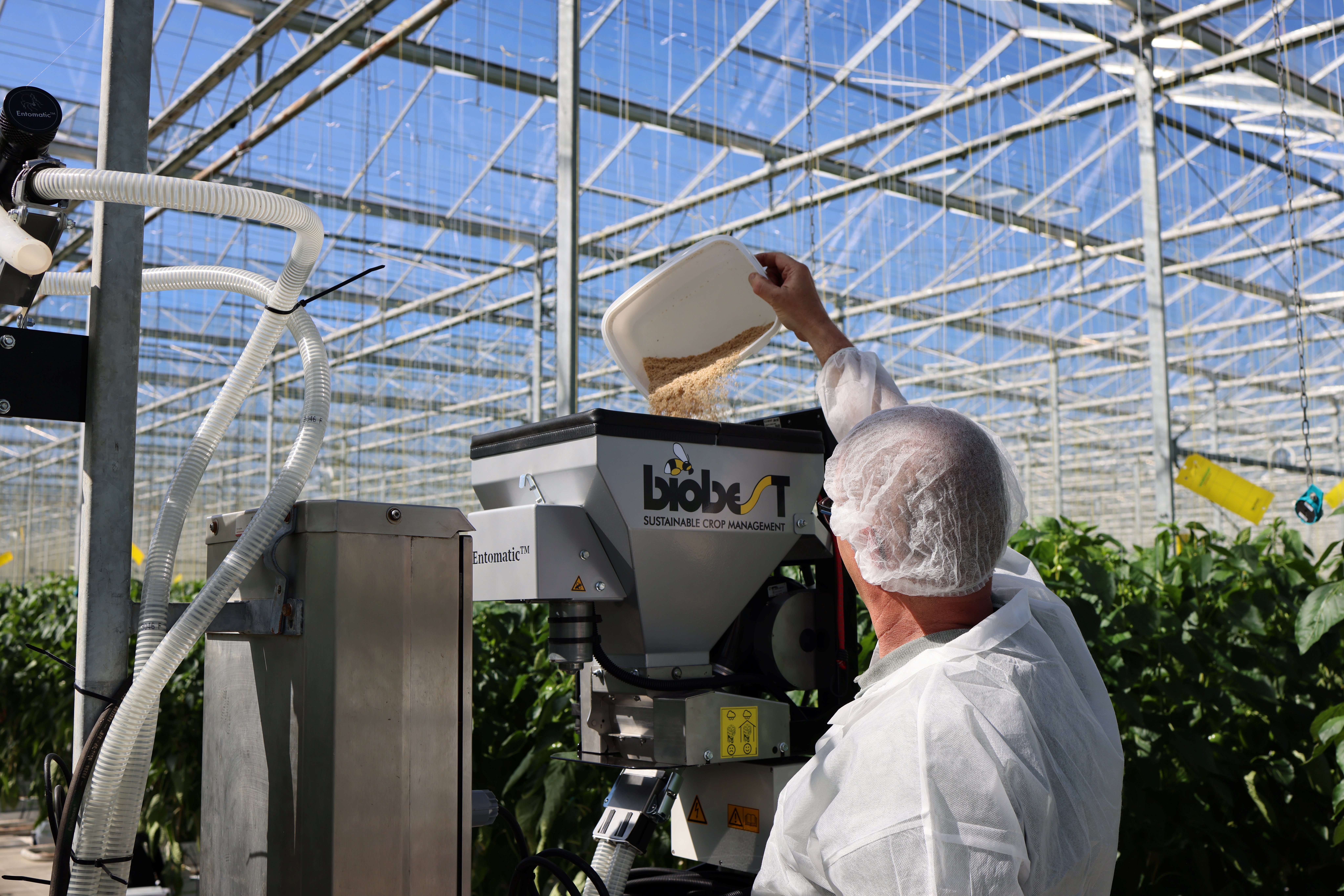 «Además de ser un sistema muy eficiente, Entomatic™ está diseñado también para una manipulación cuidadosa de los organismos», afirma Sam. «El flujo de aire controlado y un bajo estrés mecánico ayudan a mantener una tasa alta de supervivencia y vitalidad, garantizando que los organismos beneficiosos estén vivos y activos sobre los cultivos. Esto favorece un establecimiento más rápido y un control de plagas más efectivo».