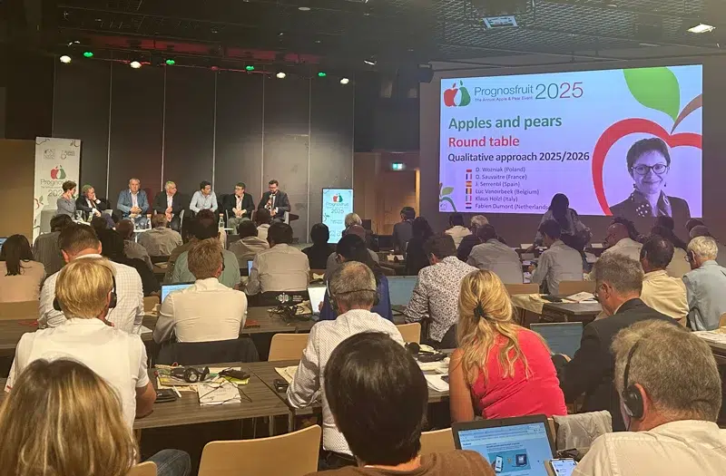 Afrucat ha participado hoy en el congreso Prognosfruit, que ha tenido lugar este año en Angers (Francia), donde se presentan oficialmente las previsiones de cosecha europeas 2025 de pera y manzana. A continuación, os hacemos un breve resumen de las estimaciones de cosecha, así como de las cifras más significativas.