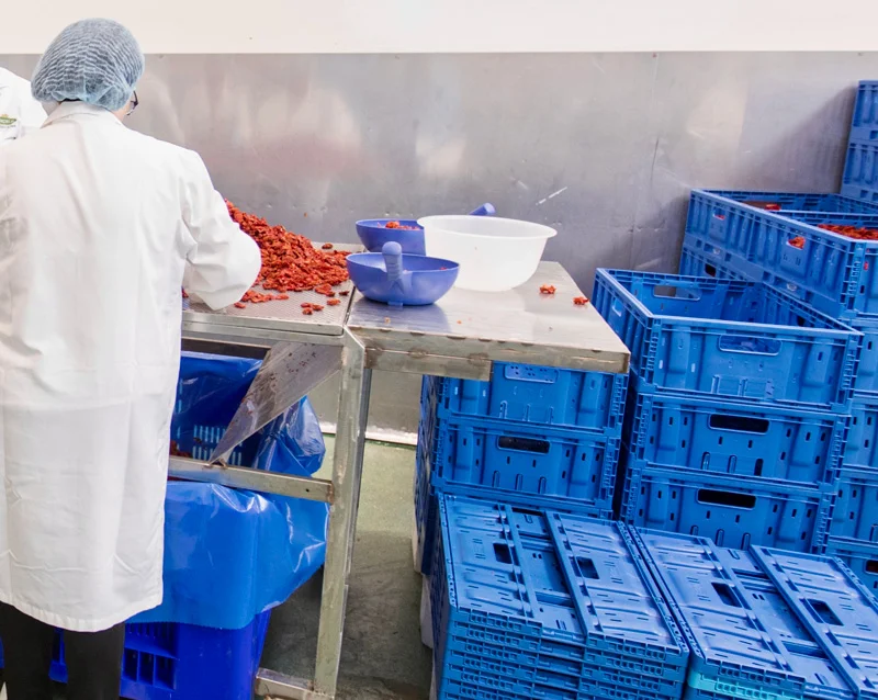 Histรณricamente, Fiordelisi utilizaba cajas de plรกstico apilables tradicionales para transportar los productos entre las plantas de producciรณn y para el transporte de salida. Estas cajas ocupaban mucho espacio cuando estaban vacรญas y limitaban la cantidad de producto terminado que se podรญa cargar en cada camiรณn. Para una empresa que maneja grandes volรบmenes estacionales de tomates secos, estas limitaciones afectaban directamente a la eficiencia operativa, los costes de transporte y las emisiones.