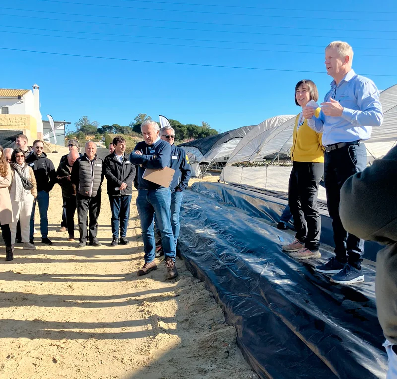 Antonino destacรณ durante la visita el รฉxito de Fandango, siempre teniendo en cuenta la importancia de plantarlo de forma temprana, asรญ como la valoraciรณn en Reino Unido de su variedad Bachata como fruta premium por parte de una cadena de supermercados.