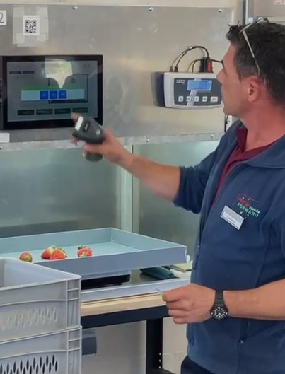En sus instalaciones tambiรฉn pudimos ver cรณmo hacen el control visual y anรกlisis de cada material genรฉtico. Se realiza fotografรญa en una mรกquina llamada photobox que escanea la fruta que se recolecta por categorรญas. La pesa, mide sus grados Brix, su acidez, mide su larga vidaโฆ y todo lo controlan desde su centro en Holanda.