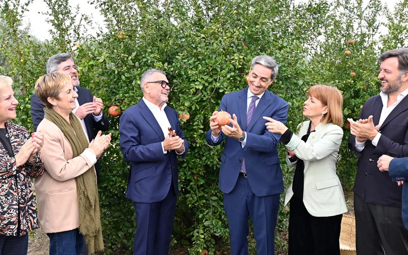 El director ejecutivo de la Oficina de Propiedad Intelectual de la Unión Europea (EUIPO), João Negrão, ha inaugurado de forma oficial la campaña 2025/2026 de la Denominación de Origen Protegida (DOP) de la Granada Mollar de Elche tras el corte simbólico realizado en la finca experimental ecológica de Innovation Labo, ubicada en la pedanía ilicitana de Santa Ana.