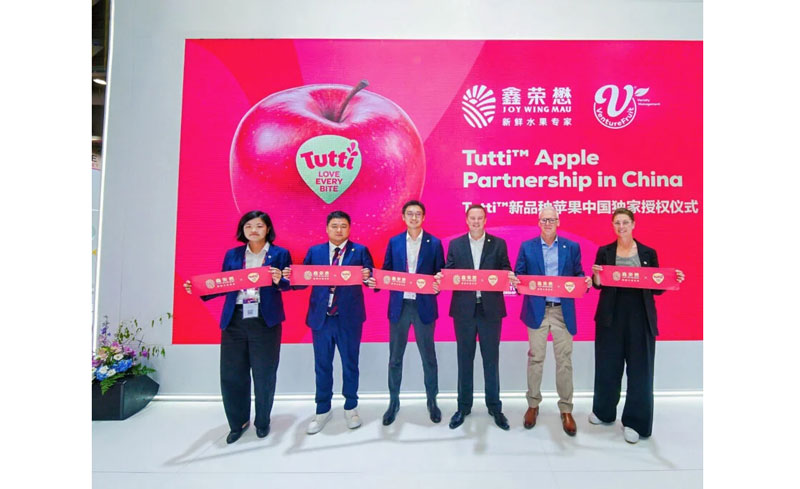 Las manzanas de la variedad HOT84A1, con nombre comercial Tuttiโข, la primera variedad de manzana del mundo creada especรญficamente para tolerar climas cรกlidos, dan un nuevo paso en su expansiรณn internacional. VentureFruit, socio estratรฉgico para la comercializaciรณn de las variedades del Hot Climate Partnership, ha firmado un acuerdo con la empresa Joy Wing Mau, uno de los principales productores y distribuidores de fruta de China, que prevรฉ plantar 300 hectรกreas de manzanos Tuttiโข.