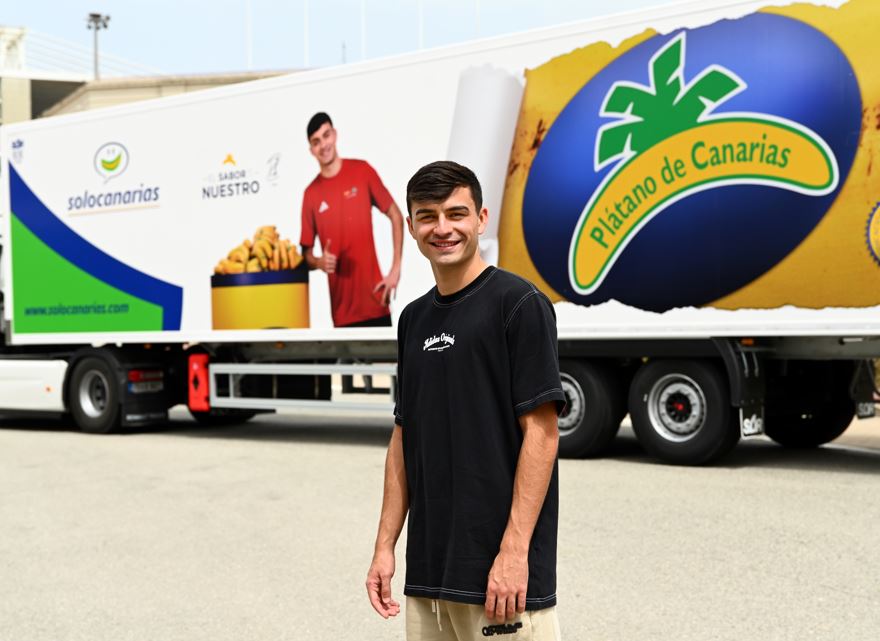 El futbolista, que durante los recientes partidos de la Selección Española frente a Georgia y Bulgaria ha firmado grandes actuaciones revelándose como uno de los motores del equipo nacional, seguirá sumando dentro y fuera de los terrenos de juego. A los 354 kilómetros que acumuló la pasada temporada en LaLiga, donde destaca como uno de los jugadores que más terreno abarca, se añaden ahora los miles de kilómetros que ya recorren los camiones que, vinilados con su imagen, transportan plátanos de Canarias desde el Archipiélago hasta cada rincón de la Península.